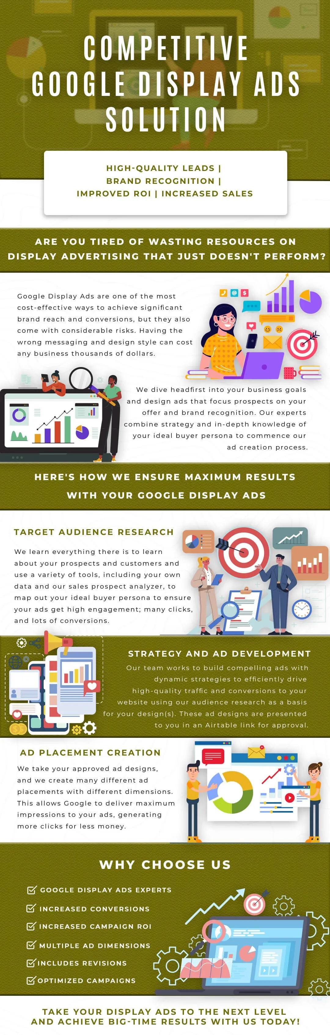 Keeping your campaign performing on Google Display requires an arsenal of creatives, but you know that! That's why you're here. If you're feeling burnt out and don't have enough time to search for different creatives and then develop the design, have our team do it for you. We provide you the assets in multiple dimensions and formats.